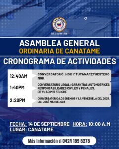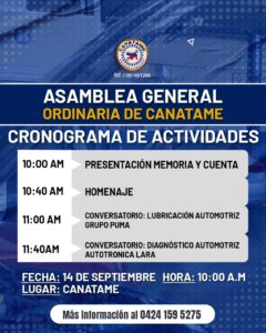 Desde el Consejo Directivo Nacional de CANATAME invitamos a todos los afiliados de nuestra distinguida cámara a participar en la Asamblea General Ordinaria que se celebrará el día 14 de septiembre 📆📌