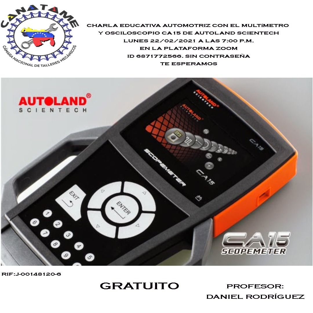 22 febrero, 2021/7:00 pm - 9:00 pm CHARLA EDUCATIVA AUTOMOTRIZ CON EL MULTÍMETRO Y OSCILOSCOPIO CA 15 AUTOLAND SCIENTCH ZOOM
