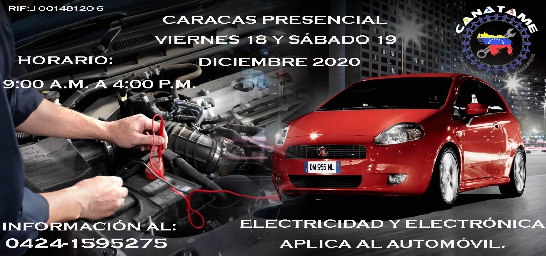 18 diciembre, 2020/9:00 am - 19 diciembre, 2020/4:00 pm ELECTRICIDAD Y ELECTRÓNICA APLICADA AL AUTOMOVIL CANATAME Av. Libertador, Multicentro Empresarial del Este, Edif. Miranda, Piso 6, Ofic. 67-A, Chacao, Caracas, Caracas