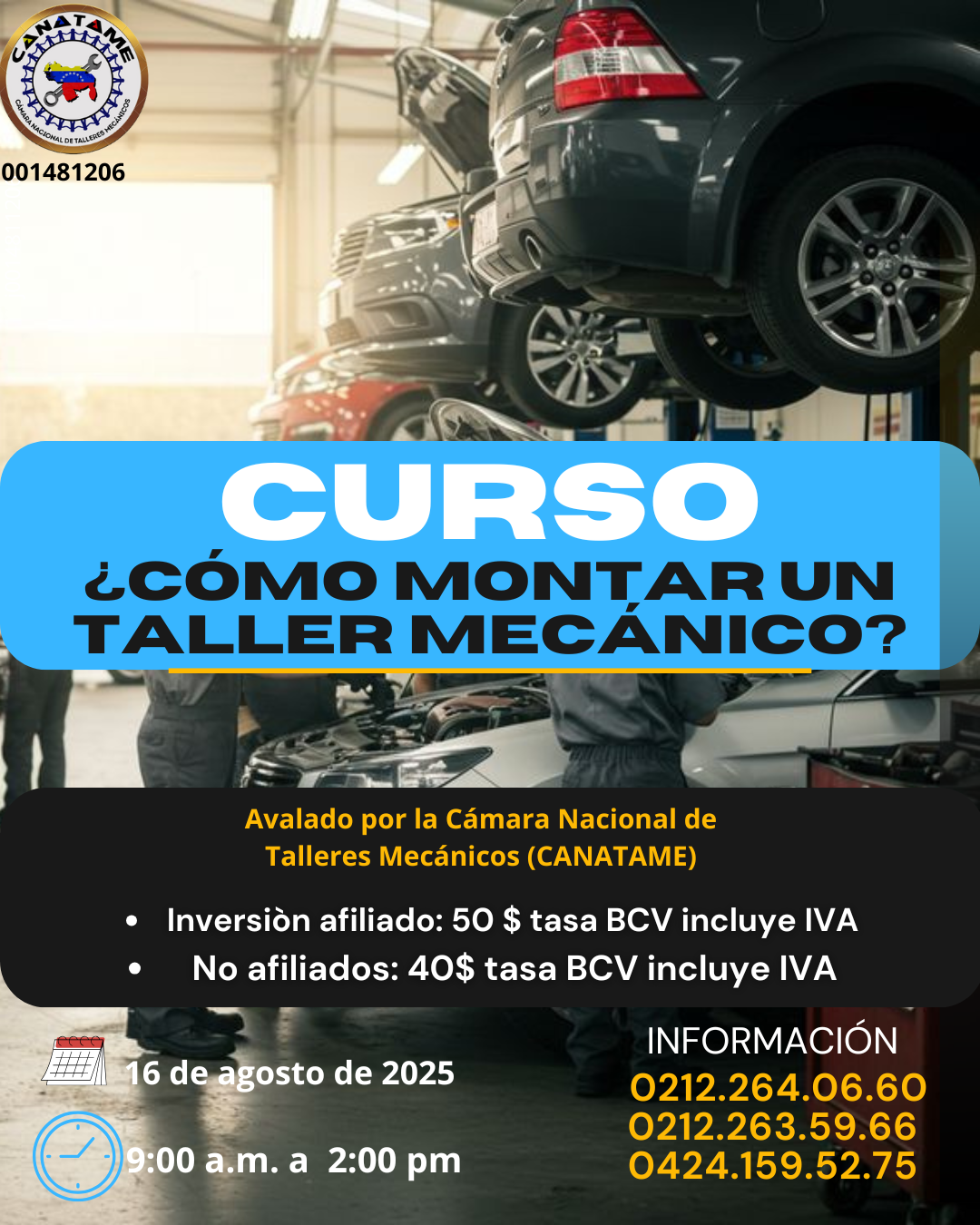 CANATAME Av. Libertador, Multicentro Empresarial del Este, Edif. Miranda, Piso 6, Ofic. 67-A, Chacao, Caracas, Caracas, Distrito Capital, VenezuelaLes escribo para compartirles información importante sobre un próximo curso: Cómo montar un taller mecánico en Venezuela? Propósito del Curso Más allá de los aspectos legales y técnicos, este curso busca consolidar el gremio automotriz, a través de la implementación de buenas prácticas, con el objetivo primordial de incentivar la formalidad en el sector. Queremos empoderar […]
