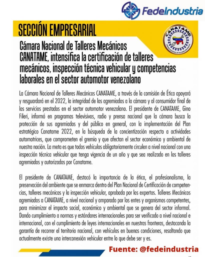 CANATAME Impulsa la Formalización y la Excelencia en el Sector Automotriz Venezolano durante el Primer Semestre de 2025 9 julio, 2025