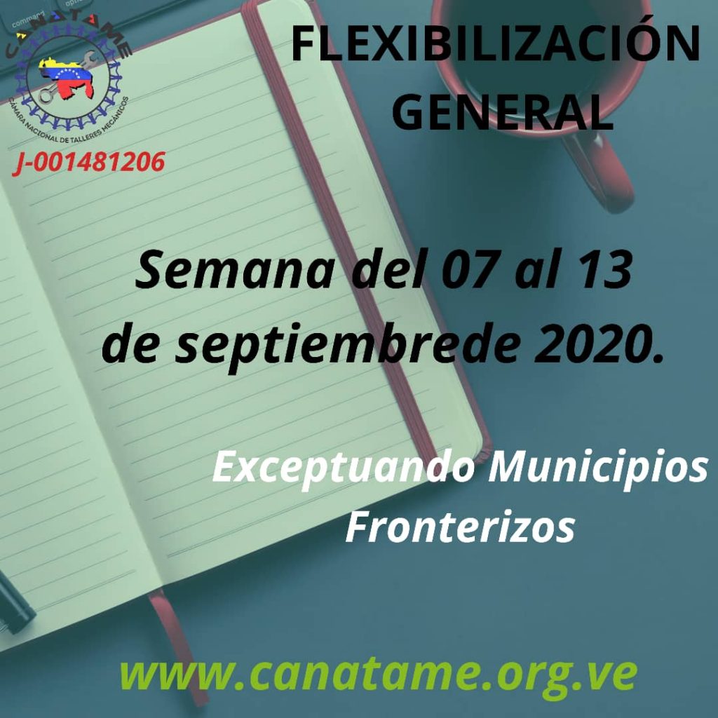SEMANA DE FLEXIBILIZACIÓN DEL 07 AL 13 DE SEPTIEMBRE DE 2020Autor de la entrada:Canatame 2doGestorPublicación de la entrada:6 septiembre, 2020Categoría de la entrada:Sin categoríaComentarios de la entrada:Sin comentarios Etiquetas: gasolina, ideas, maduro, novedades, talleres, venezolanosLeer más artículos Entrada anteriorAGENDA VIERNES 04.09.2020 Siguiente entradaHORARIO TALLERES MECÁNICOS SEMANA DE FLEXIBILIZACIÓN DEL 07 AL 13 DE SEPTIEMBRE DE 2020 También podría gustarte PRÓXIMAMENTE RECOLECCIÓN DE DESECHOS PELIGROSOS 5 noviembre, 2020 SENTENCIA TSJ SUSPENSIÓN EFECTOS DE NORMAS GENERALES DE TRIBUTACIÓN ESTADAL Y MUNICIPAL 10 julio, 2020 Prueba de Suficiencia de CANATAME 23 febrero, 2020Deja una respuesta Cancelar la respuestaComentarioIntroduce tu nombre o nombre de usuario para comentarIntroduce tu dirección de correo electrónico para comentarIntroduce la URL de tu web (opcional) Guarda mi nombre, correo electrónico y web en este navegador para la próxima vez que comente.